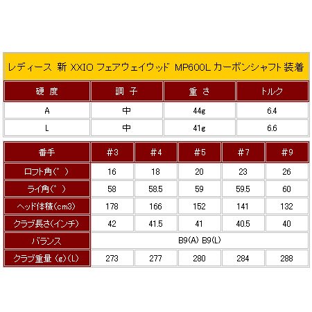 ボールスピードをアップさせる、新テクノロジー「オート・パワーインパクト」で高く、強く突き進む大きな飛びを実現。 ■楽に、軽くスイングできる軽量設計 ■楽にボールが上がって遠くへ飛ばせる[オート・パワーインパクト] ■大きなスイートエリアで平均飛距離アップ ■[新・ゼクシオ専用4分割バルジ&ロール設計]で方向安定性アップ ■つかまりが良く、楽に振りぬける重心設計 ■女性にやさしい[新・ゼクシオ専用設計MP600Lシャフト]でヘッドスピードアップ ■構えやすく振り抜きやすさを感じるヘッド・シャフトデザイン ■気持ちよく振り抜ける爽快な打球音 ●目安適応ヘッドスピード 【A】〜37m/s 【L】〜35m/s ※ヘッドスピードの基準はドライバー使用時の数値 ●ヘッド素材 【フェース】SP700チタン 【ボディ】マレージング+タングステンニッケルウエイト 【クラウン】高強度15V-3Cr-3Sn-3ALチタン ●ヘッド製法 【フェース】鍛造 【ボディ】ロストワックス精密鋳造 【クラウン】鍛造 ●仕上げ 高輝度メタリックブルー グラデーション塗装 ミラー+サテン+ビーズショット仕上げ バッヂ:ピンク ●クラブ:MADE IN JAPAN ●新溝ルール適合モデル ●オリジナルヘッドカバー付(MADE IN CHINA) ●グリップ:新・ゼクシオ専用フルラバーグリップ(ゼクシオロゴ入り)商品の仕様