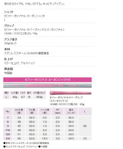 ミズノ(MIZUNO) ゼファー ZL-01 レディス SW アイアン Lシャフト 43BR12181