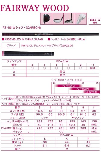 【レディース】ブリヂストン ゴルフ ツアーステージ ファイズ PHYZ CL フェアウェイウッド PZ-401W カーボン #4/L