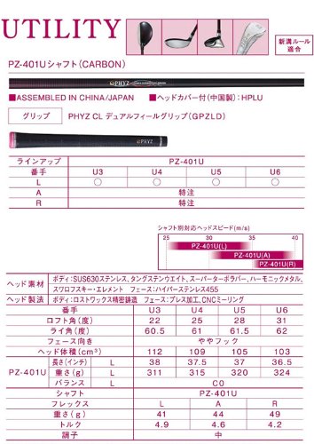 【レディース】ブリヂストン ゴルフ ツアーステージ ファイズ PHYZ CL ユーティリティー PZ-401U カーボン U4/L
